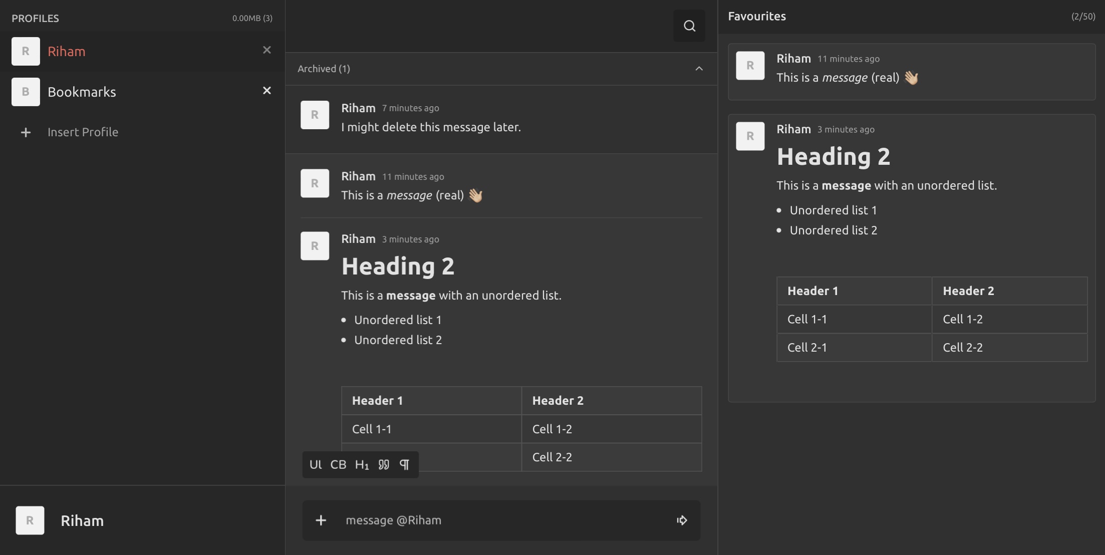 In-browser application that lets you write and organise your ideas (or "messages") in a messaging application-like interface.